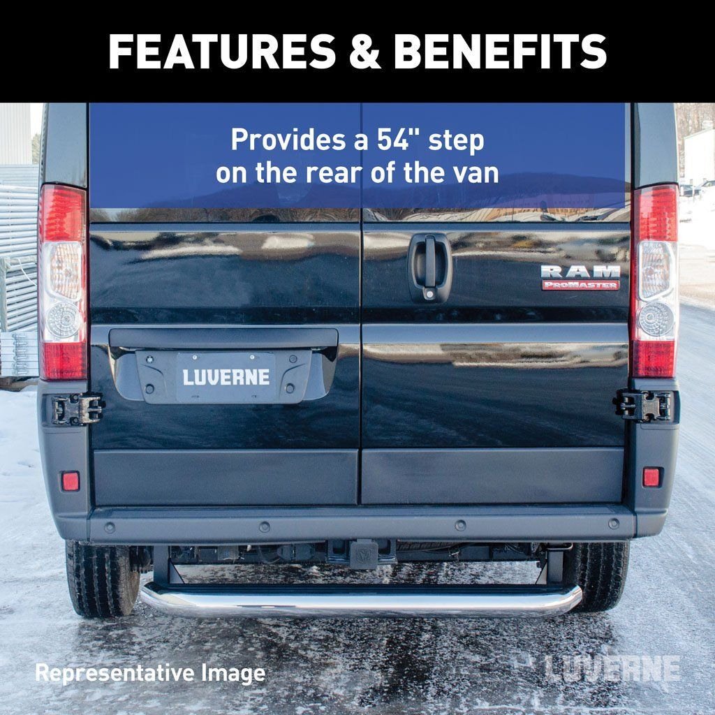 Whether you're running a solo operation or coordinating an entire fleet, your business demands professionalism and confidence. LUVERNE MegaStep® rear van steps offer enhanced convenience, ergonomics and safety for your cargo van. They feature a dual construction for long-lasting dependability, a non-skid rubber tread for safety and a vehicle-specific design for a custom fit on your commercial van.