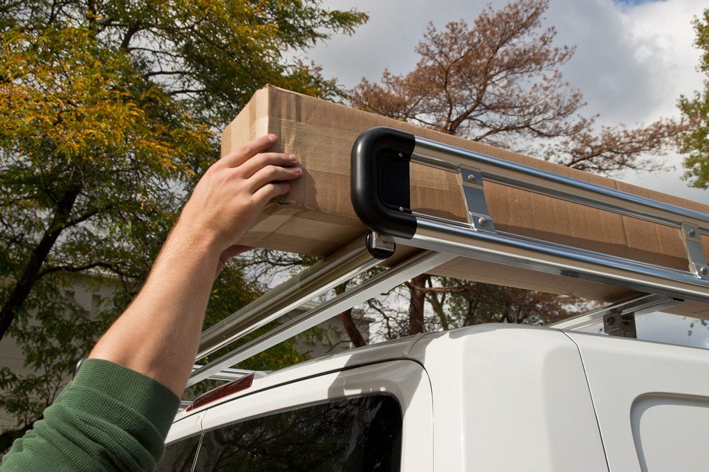 Work hard, look stylish and stay safe. The AluRack features the industry's original rolling bar, which makes it safe and easy to load bulky sheets of plywood, drywall, pipe and even weekend toys from the back of the van. The lightweight, yet rugged design can carry all of your cargo and withstand challenging weather conditions.