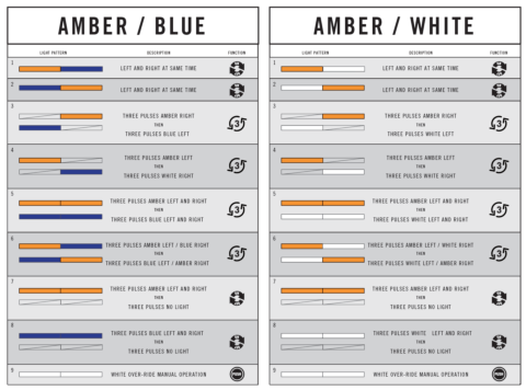 - 8 amber and white strobe patterns with capability to increase and decrease strobe speed