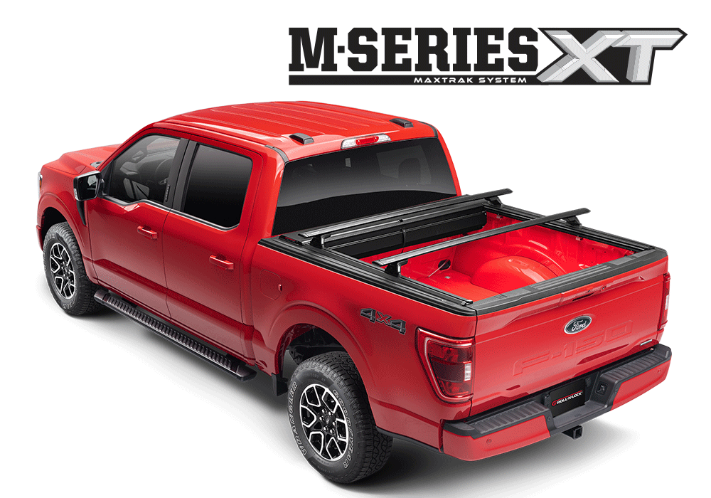 The Roll-N-Lock® M-SERIES XT combines the M-Series retractable truck bed cover with our T-slot integrated MaxTrak System that allows for unique customization to your truck bed to meet your individual needs. The Roll-N-Lock® M-XT is a secure, robust vinyl-over-aluminum hybrid cover design dedicated to delivering four-season protection and optimal bed security. It tackles durability while remaining exceptionally easy to operate with its unique frictionless construction and insulated grip handle.