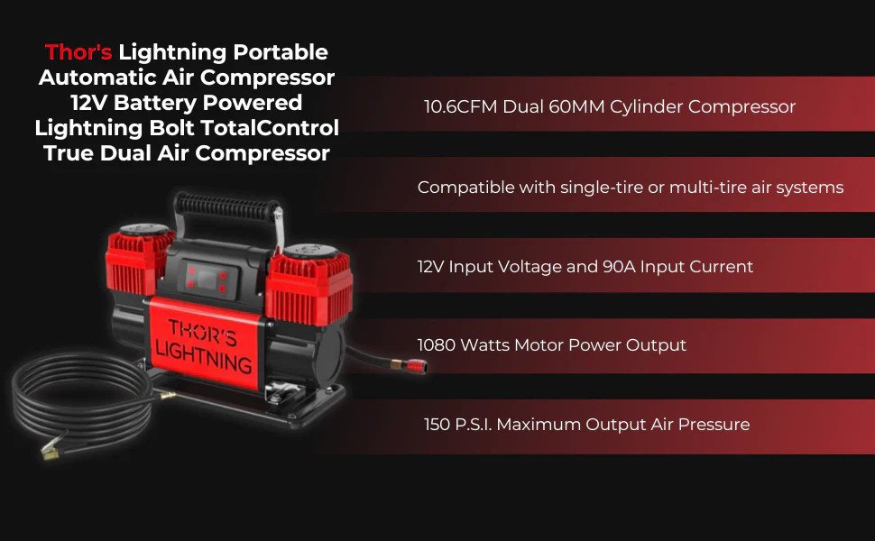 Thor's Lightning Bolt TotalControl Portable 12v True Dual Air Compressor